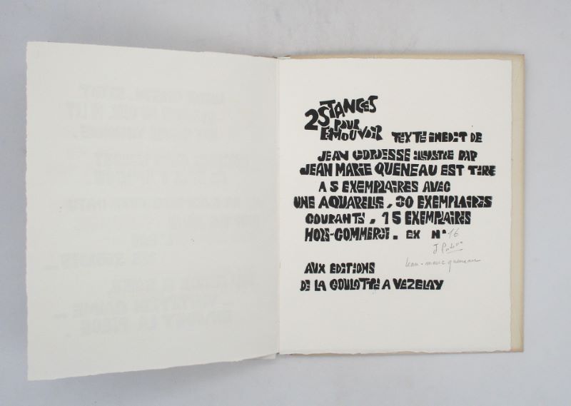 Édition originale illustrée de deux planches de Jean-Marie Queneau. Cet exemplaire comporte un envoi autographe signé de l’auteur et de l’artiste à Jean Cortot.