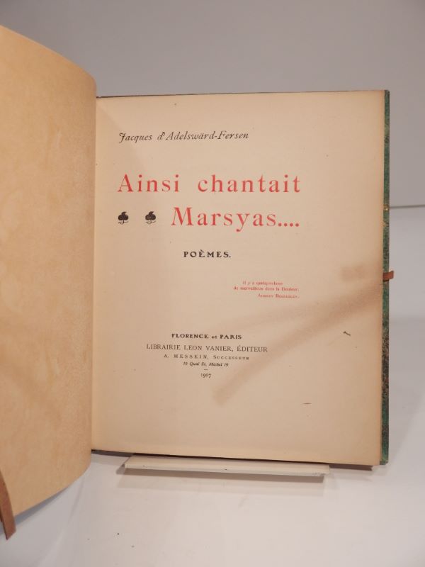 Florence et Paris, Librairie Léon Vanier, A. Messein successeur, 1907. In-8 carré, 61-(1) pp., reliure demi-maroquin vert, couverture conservée.