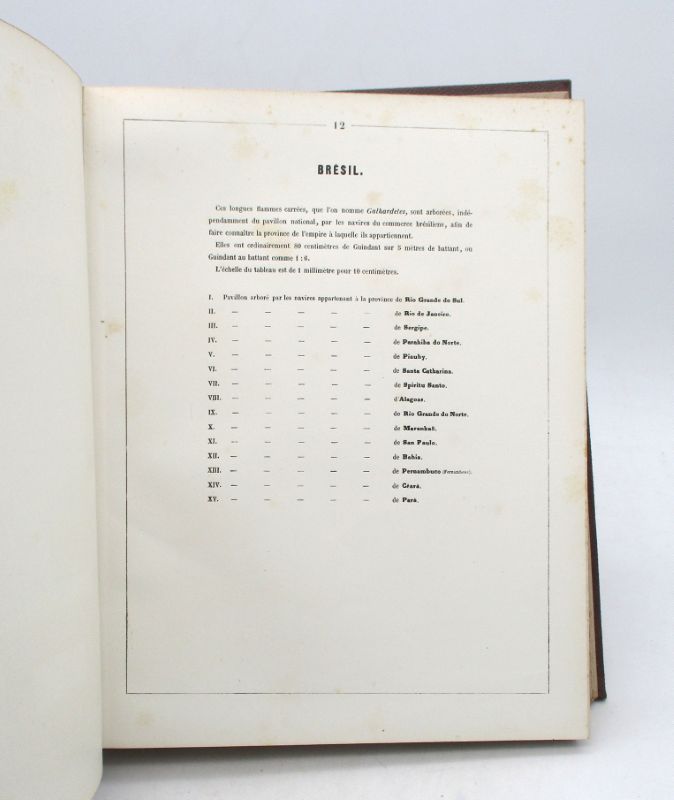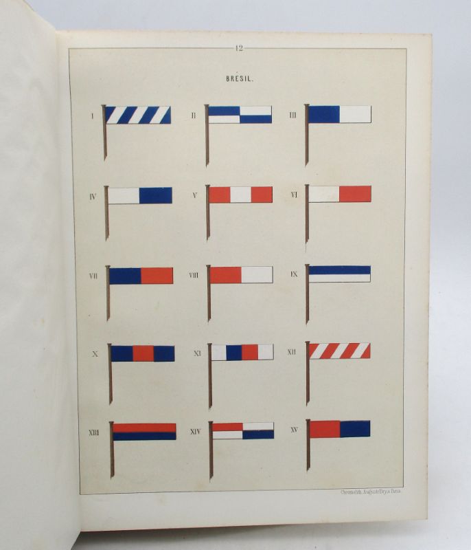 Édition originale et unique de cet album illustré de 65 planches en couleurs représentant des drapeaux de la marine. Sans la planche 50 qui n’a jamais été publiée.