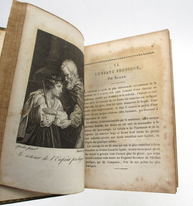 Joli petit Almanach de l’année 1812 illustré d’une vignette au titre et 8 planches, gravées par Lambert d’après David, Dominiquin ou Spada. Il est composé de son calendrier, de l’explication des planches et de poèmes de divers auteurs tels Dufrenoy, Joliveau, Morellet ou encore Parny.