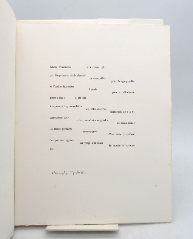 Édition originale illustrée de 5 eaux-fortes originales dont la première est signée et justifiée par l’artiste. Un des exemplaires hors commerce tirés sur vélin d’Arches, signé à la justification par l’auteur.