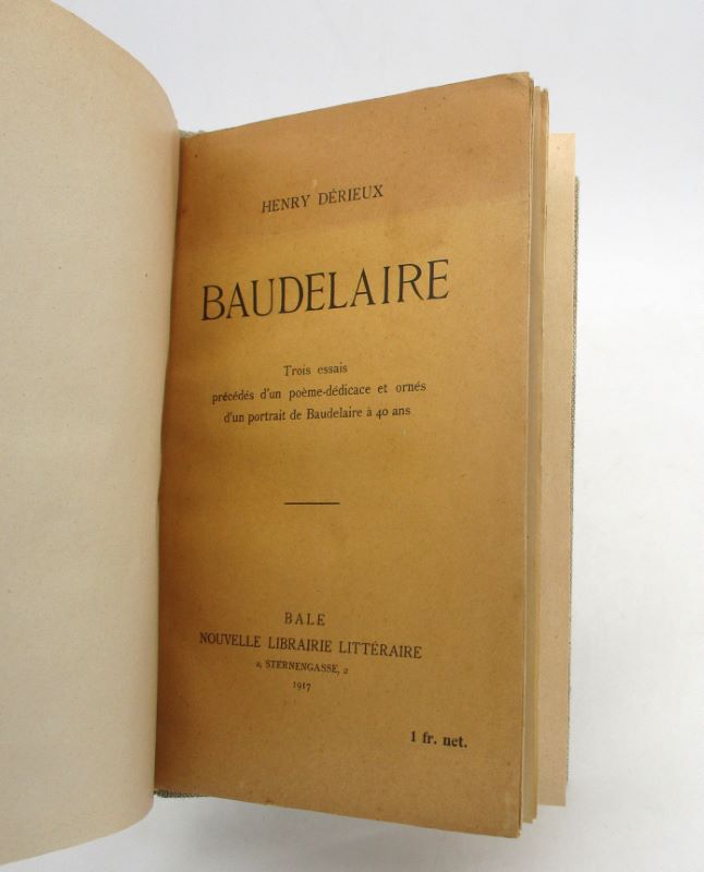 Bâle, Nouvelle Librairie littéraire, 1917. In-8, 56 pp., toile écrue à la bradel, dos long, pièce de titre noire, couverture conservée.
