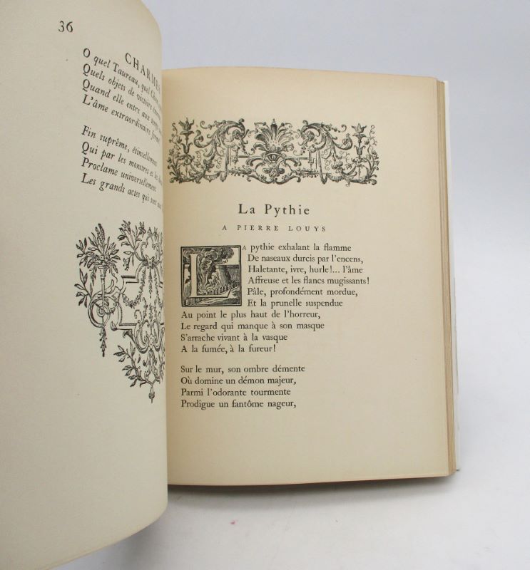 Édition en partie originale pour 14 poèmes (sur 22) de ce recueil. Un des 325 exemplaires sur vélin pur fil Lafuma-Navarre. Il est orné d’une vignette au titre, de bandeaux et culs-de-lampes en noir. Bel exemplaire parfaitement établi dans une reliure de maroquin de Duhayon. Lhermitte, 588.
