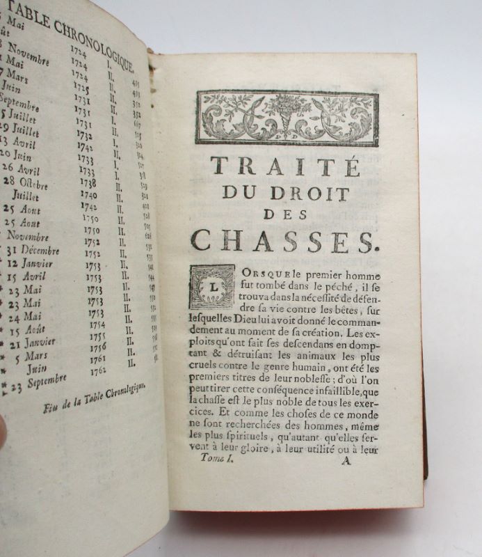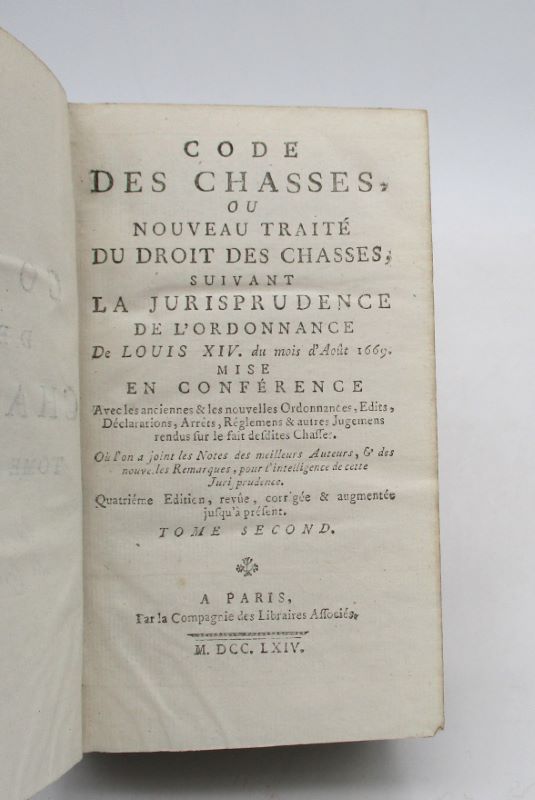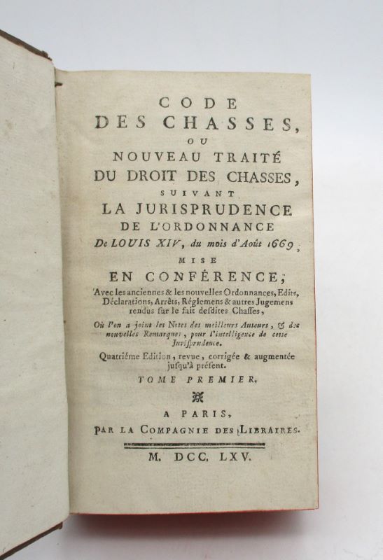 Quatrième édition revue et augmentée de ce recueil des textes encadrant la chasse en France au XVIIIe siècle. Ex-libris manuscrit Renouf de La Coudraye.