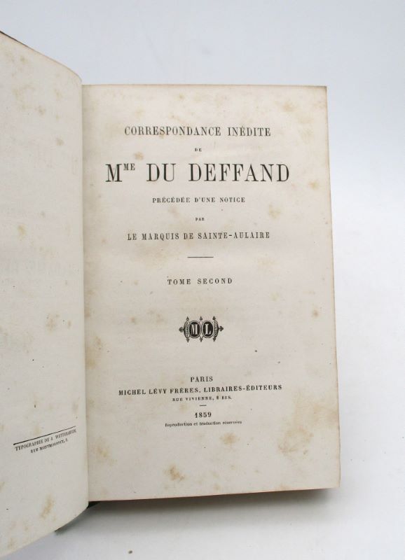 Image supplémentaire du livre Estimation du livre « correspondance inédite de Mme du Deffand »