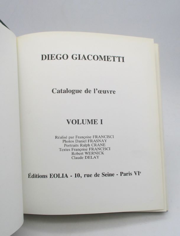 Premier tome seul du catalogue raisonné de Diego Giacometti illustré de reproductions en noir.