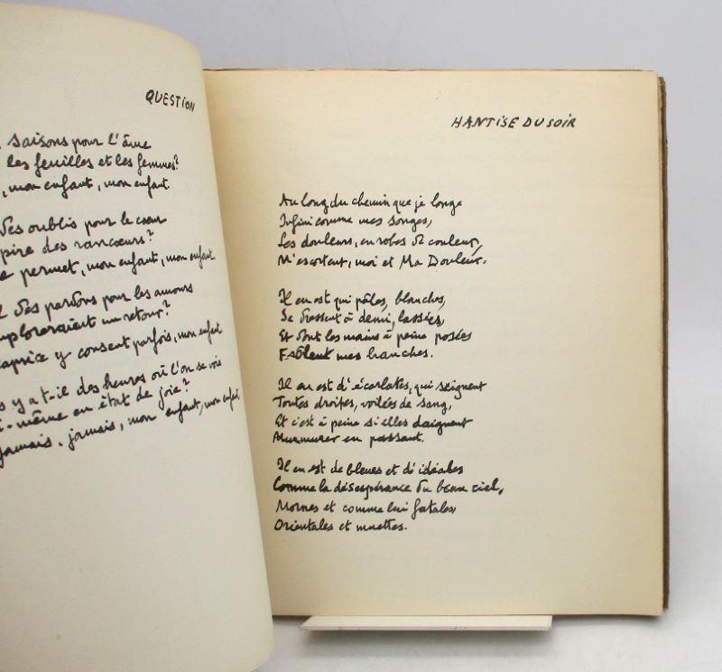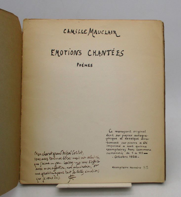 Édition originale de ce manuscrit reproduit sur papier autographique. Un des 115 exemplaires hors commerce, seul tirage annoncé. Celui-ci comporte un envoi autographe signé de l’auteur à Alfred Cortot. Exemplaire non coupé.