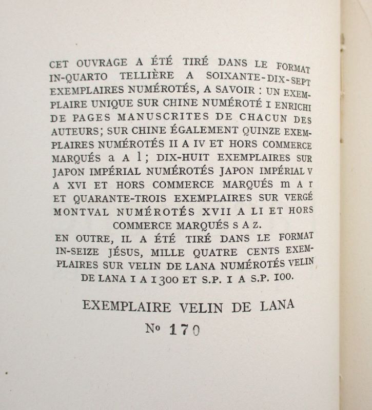 Édition originale. Un des 1400 exemplaires sur vélin de Lana.
