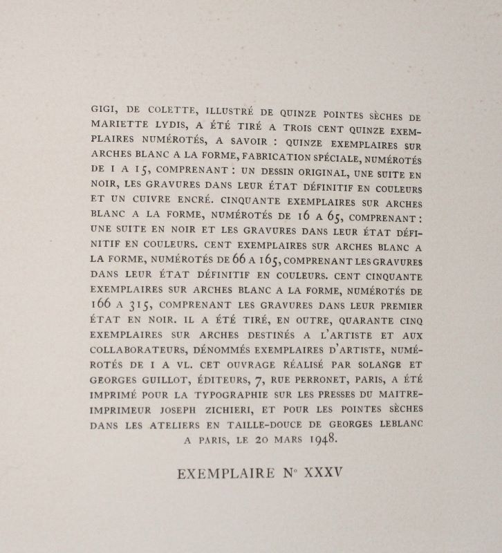 Édition illustrée des pointes sèches en couleurs de Lydis. Un des 45 exemplaires sur Arches destinés à l’artiste et aux collaborateurs.
