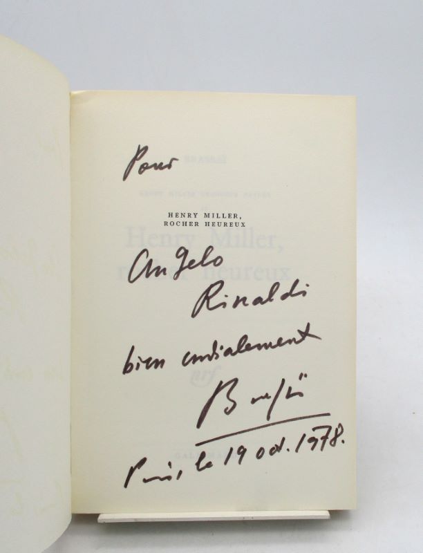 Édition originale illustrée de reproductions de photographies en noir et blanc de Brassaï. Exemplaire du service de presse comportant un envoi autographe signé du photographe à Angelo Rinaldi, journaliste français.