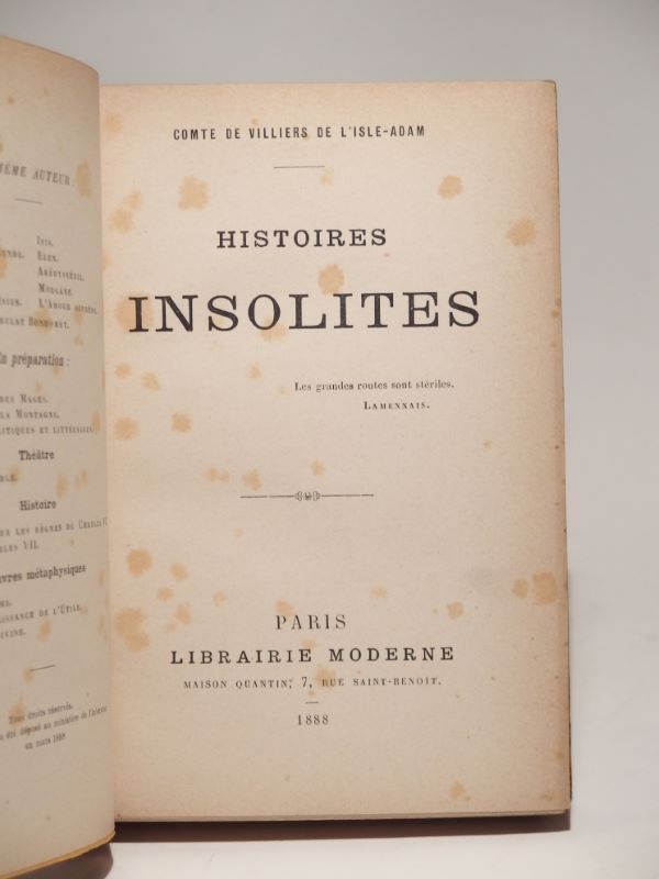 Paris, Librairie moderne, 1888. In-12, (4)-314-(2) pp., reliure ép. demi-chagrin rouge, tête dorée, couverture jaune impr. conservée.