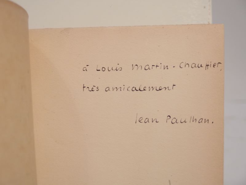 Tirage limité à 525 exemplaires numérotés, ici un des 500 sur vélin Lafuma, ENVOI autographe signé de Paulhan à Louis Martin-Chauffier.