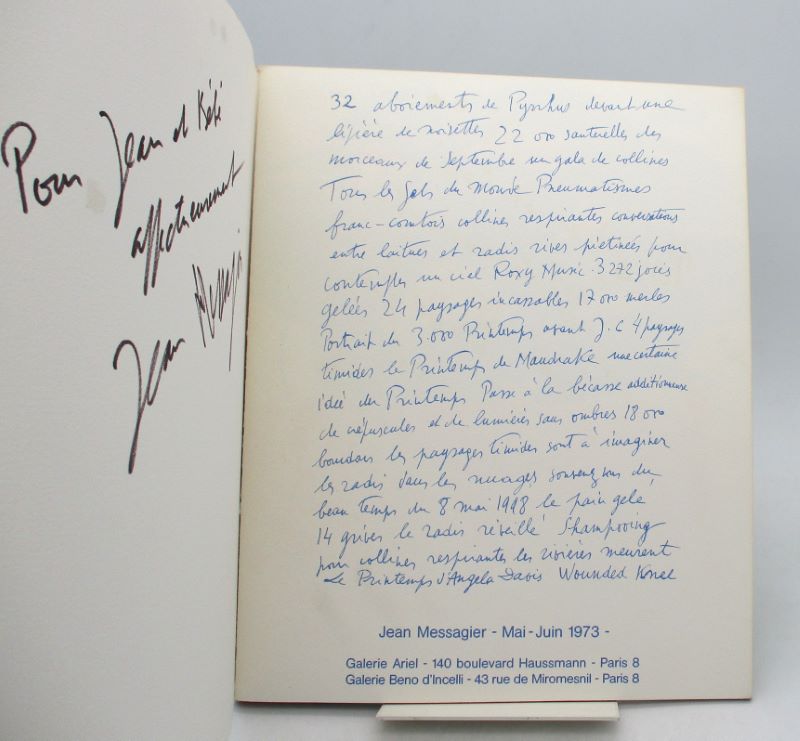 Catalogue de l’exposition Jean Messagier à la galerie Ariel de Paris, illustré en couleurs et comportant un envoi autographe signé de l’artiste à Jean Cortot.