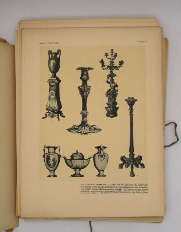 Album composé de 80 planches de mobilier français du XIXe siècle, chaque section est accompagnée d’un double feuillet d’explication.