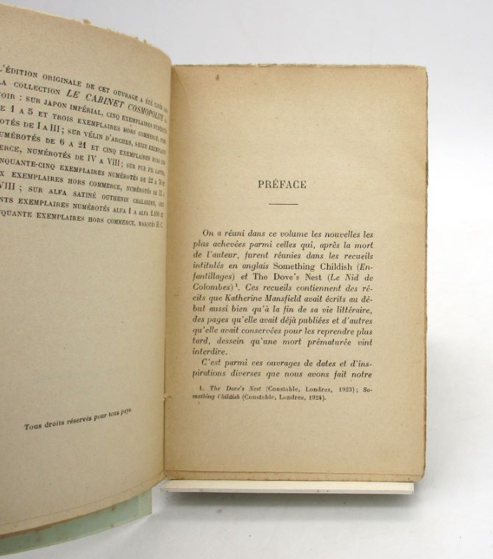 Édition originale de la traduction française par Madeleine T. Guéritte et Marguerite Faguer. Cet exemplaire comporte un envoi autographe signé de la traductrice Madeleine Guéritte à son éditeur Pierre-Victor Stock ainsi que son timbre sec. On joint la notice des éditeurs ainsi qu’une critique par Edmond Jaloux du présent ouvrage.