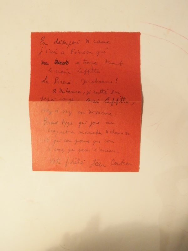 Exemplaire de Castagnon (ex-libris manuscrit). On a joint une LETTRE AUTOGRAPHE de Cocteau à Castagnon (1 feuillet recto-verso sur papier rouge).