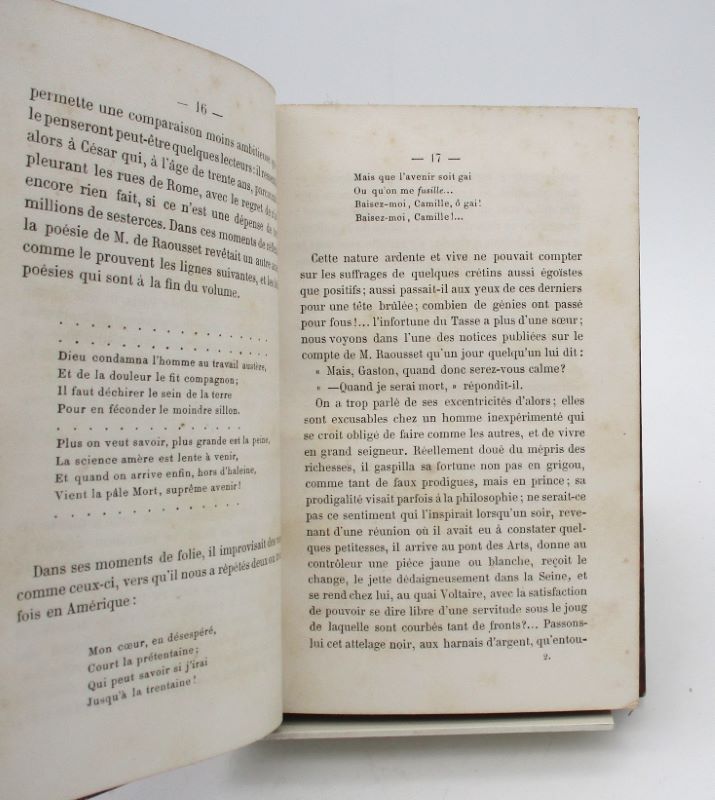 Paris, E. Dentu, 1859. In-12, 318 pp., demi-basane de l’époque rouge, dos lisse orné de filets dorés, titre et chiffre F. M. dorés au dos.