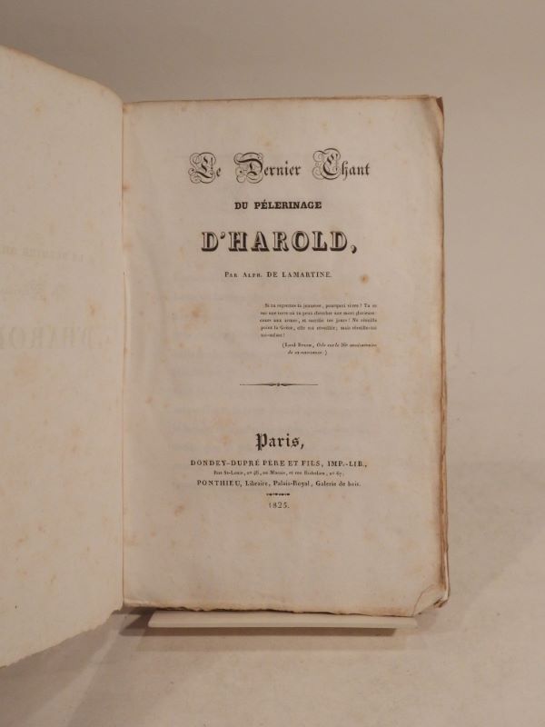 Edition originale de la continuation par Lamartine de l’oeuvre inachevée de Byron.