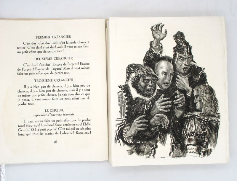 Édition illustrée des gravures en noir de Decaris. Exemplaire non numéroté sur Japon comprenant une suite sur le même papier. Cet exemplaire comporte un envoi autographe signé de Jean-Louis Barrault également signé par Decaris : « au nom de mon maître », sans doute Paul Claudel, qu’il aima beaucoup et dont il mit en scène plusieurs pièces.