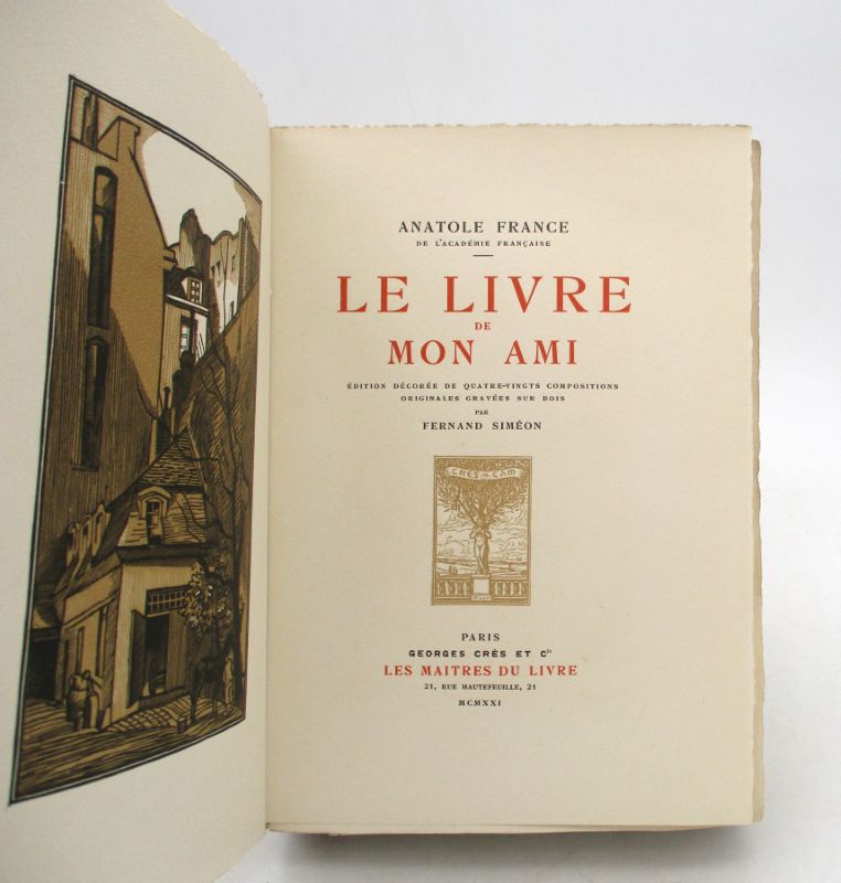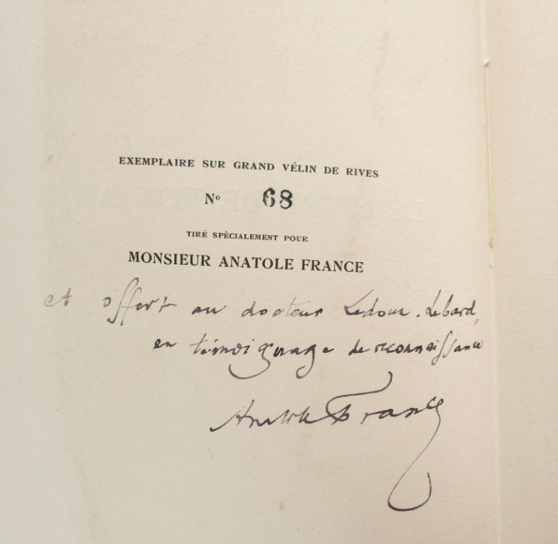 Édition illustrée des 80 compositions en couleurs gravées sur bois par Fernand Siméon. Un des 70 exemplaire sur grand vélin de Rives, imprimé spécialement pour l’auteur et comportant un envoi autographe signé de ce dernier au docteur Ledoux-Lebard, un médecin collectionneur d’art. Exemplaire non coupé.