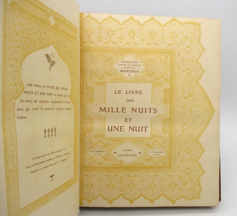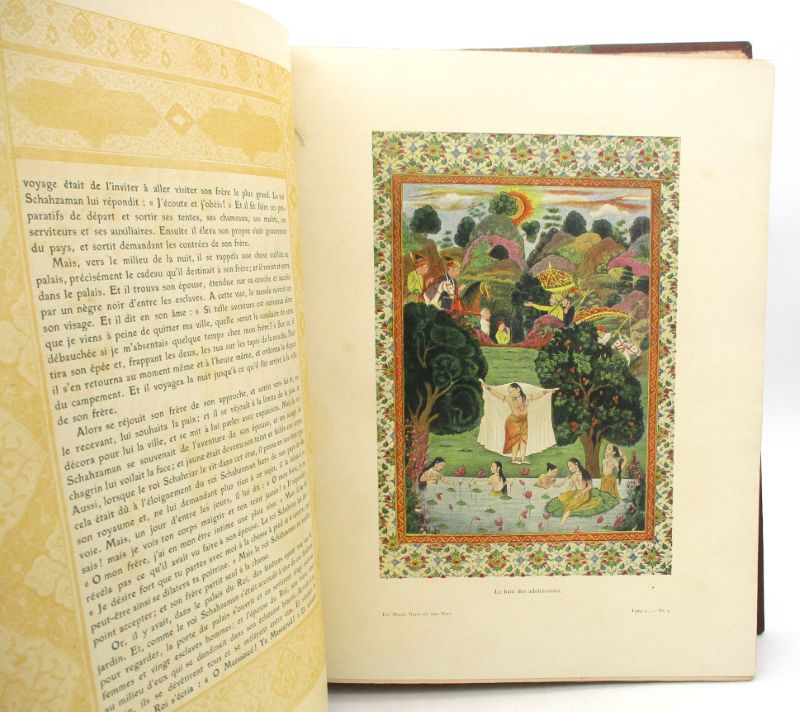 Jolie édition traduite par Mardrus et illustrée de miniatures, encadrements et enluminures provenant de manuscrits persans et hindous. Ex-libris de la bibliothèque du château de Saint-Jean, ex-libris doré Charles Colombier de Limoges. Bon état intérieur.