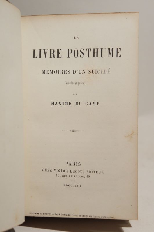 Paris, Victor Lecou, 1853. In-12, (4)-331-(1) pp., demi-basane brune d’époque, dos orné.