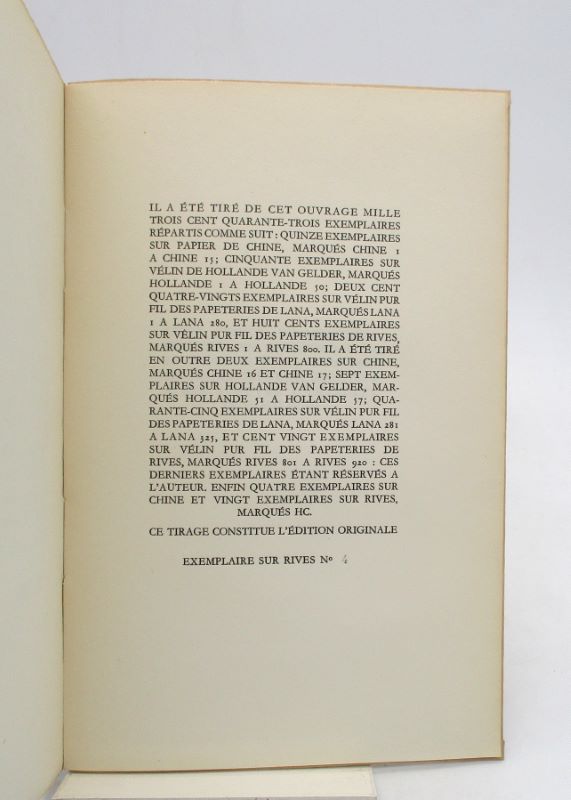 Édition originale de cet essai. Un des 800 exemplaires sur vélin pur fil des papeteries de Rives. Bon exemplaire non coupé.