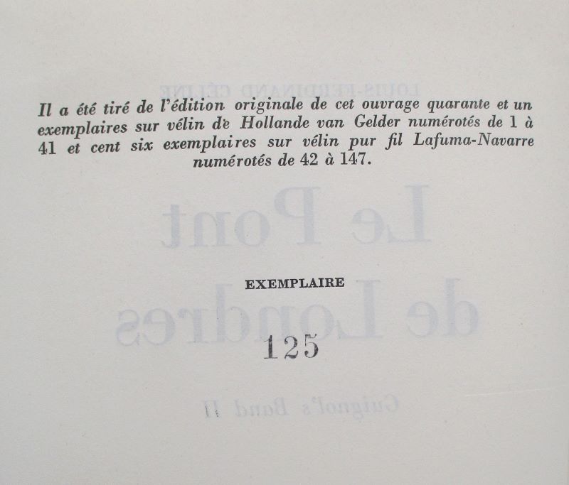 Édition originale posthume de la seconde partie de Guignol’s band. Un des 106 exemplaires sur vélin pur fil Lafuama-Navarre. Exemplaire non coupé.