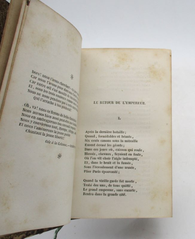 Édition réunissant : Lui. – Bounaberdi (Orientale). – Première Ode à la Colonne. – Souvenirs d’Enfance (l’Empereur au Panthéon). – Deuxième Ode à la Colonne. – Le grand Homme vaincu. – Napoléon II. – À Laure, duchesse d’Abrantès. – A l’Arc de Triomphe de l’Étoile. – Le 15 Décembre 1840.