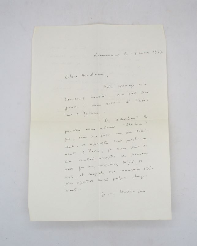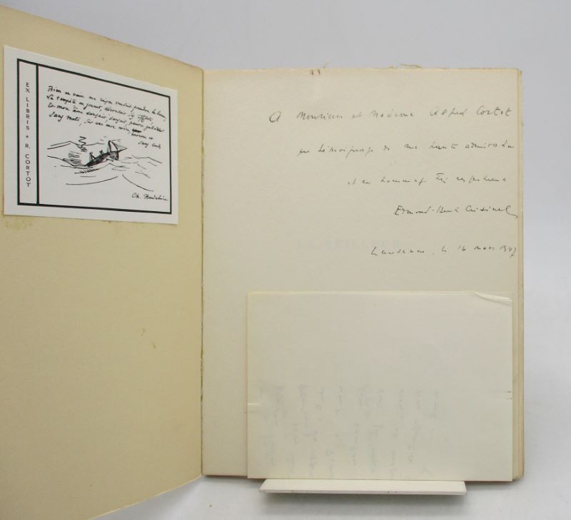 Édition originale de ce recueil orné d’un portrait de l’auteur en frontispice. Un des 250 exemplaires sur vélin crème, celui-ci comporte un envoi autographe signé de l’auteur à Alfred Cortot et une lettre autographe signé de l’auteur (Lausanne, 17 mars 1947. In-4, 2 pp.). Ex-libris gravé de R. Cortot.