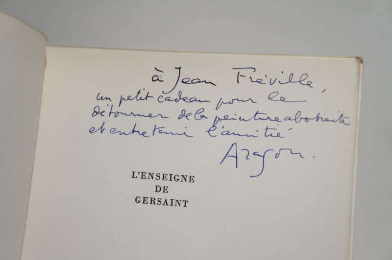Edition originale, tirage limité à 5110 exemplaires, ICI UN DES 50 exemplaires hors commerce sur vélin, agrémenté d’un ENVOI autographe signé d’Aragon à Jean Fréville, « un petit cadeau pour le détourner de la peinture abstraite et entretenir l’amitié ». Bel exemplaire.