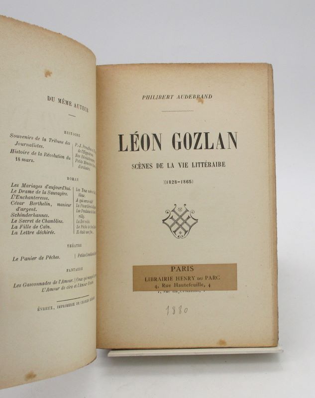 Édition originale de cette biographie de Léon Gozlan par le journaliste Philibert Audebrand. Cachet ex-libris du Dr Girard.