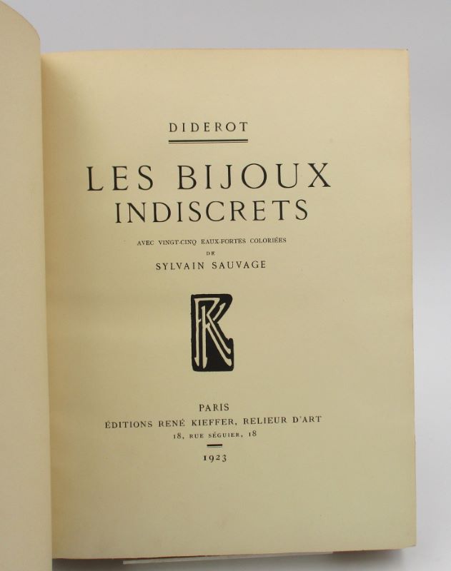Édition illustrée de 25 eaux-fortes en couleurs et hors-texte de Sylvain Sauvage, un des 500 exemplaires de ce tirage avec « eau-forte coloriée ». Ouvrage publié et relié par René Kieffer.