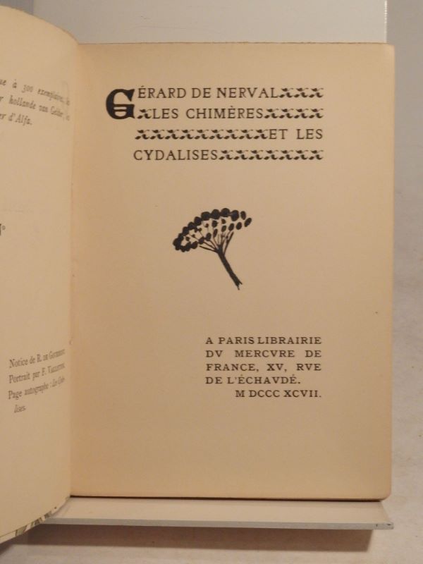 Paris, Librairie du Mercure de France, 1897. In-18, 58-(4) pp., un portrait par F. Vallotton, un poème en fac-similé, broché, couverture illustrée rempliée.