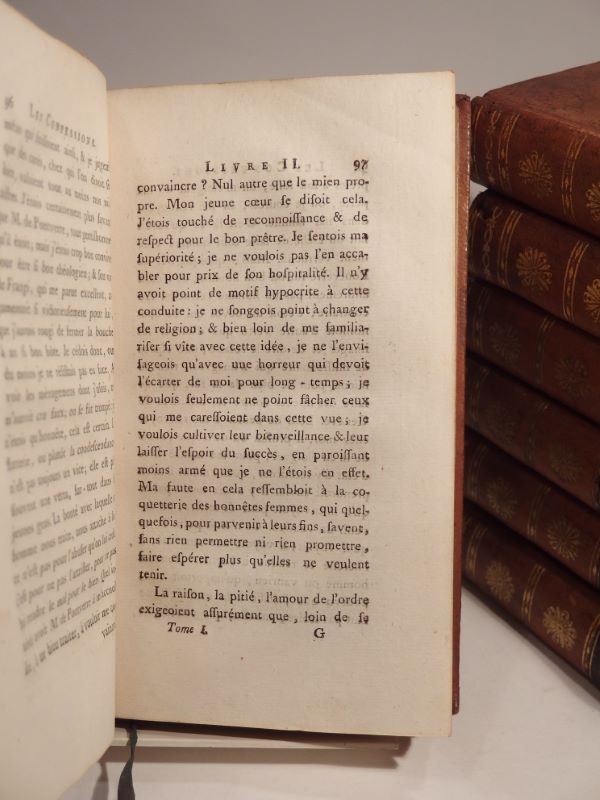 Neuchâtel, L. Fauche-Borel, 1790. 7 volumes in-8, (4)-379-(1), (4)-463-(1), (4)-439-(1), (4)-447, (4)-447-(1), (4)-448 et (4)-472 pp., reliure de l’époque plein veau raciné, dos ornés.