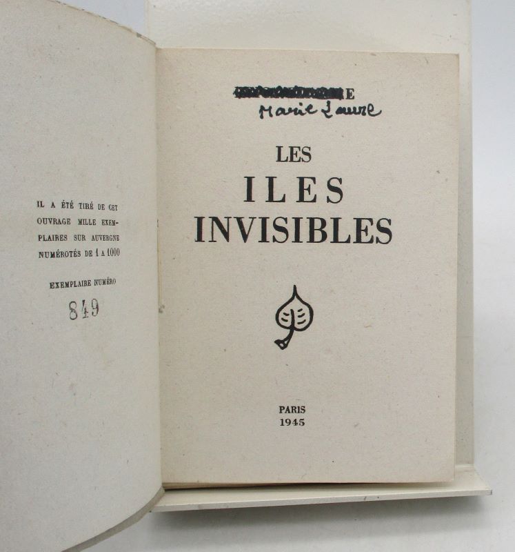 Édition originale comportant les mentions du pseudonyme biffées et remplacées à la main par Marie-Laure de Noailles. Un des 1000 exemplaires sur Auvergne, seul tirage annoncé. Exemplaire partiellement coupé.