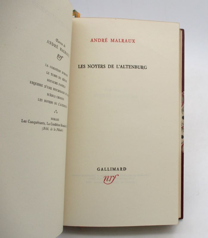 Première édition sous ce titre du dernier roman de Malraux. Un des 23150 exemplaires tirés sur alfa. Bel exemplaire dans une jolie reliure signée.