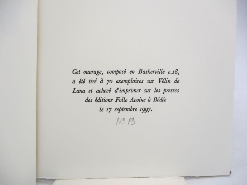 Édition originale illustrée 3 gravures sur bois signées par Yasse Tabuchi. Un des 70 exemplaires tirés sur vélin de Lana, unique tirage annoncé.
