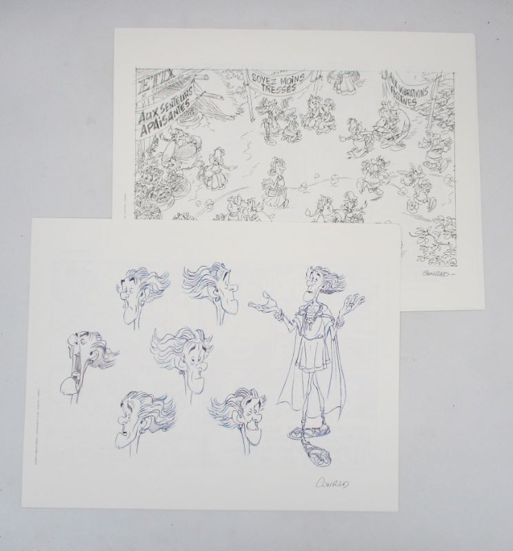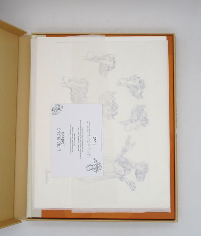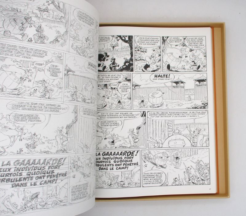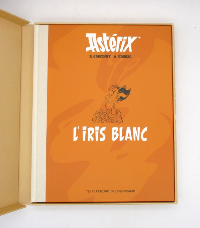 Édition originale de cet ouvrage relatif au quarantième et dernier album des aventures d’Astérix et Obélix. Un des 130 exemplaires hors commerce. Il comprend les planches crayonnées avec, en regard, les planches encrées, un cahier de recherches graphiques et 5 ex-libris.