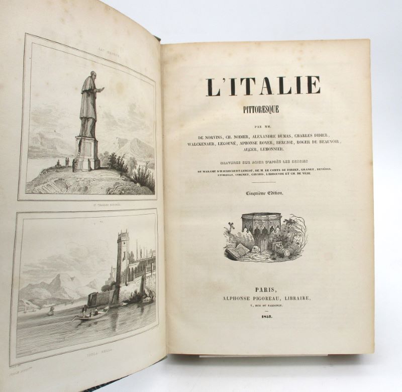 Illustré de 27 gravures sur acier, et deux grandes cartes dépliantes (y compris Corse, Sardaigne et Malte) en fin de volume. Textes sur Malte, Ajaccio, la Sicile, la Sardaigne, la Calabre, Naples, la Toscane, Venise, Savoie et Piémont, etc. Anoter : deux articles de Berlioz (Voyage musical, Académie de France à Rome).