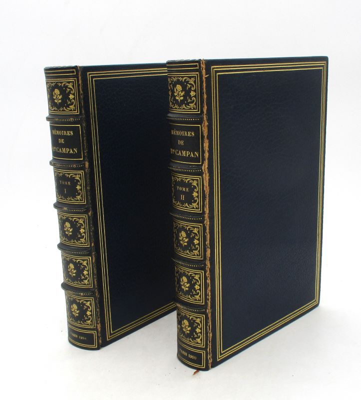 Paris, L. Carteret, 1910. 2 vol. in-8, 291 pp. + 286 pp., maroquin bleu foncé de Léon Lemardeley, triple filet doré en encadrement sur les plats, dos à nerfs orné de caissons dorés, encadrement intérieur orné de dentelle dorée, doublure et garde de soie moirée, tranches dorées, couverture conservée, étui bordé.