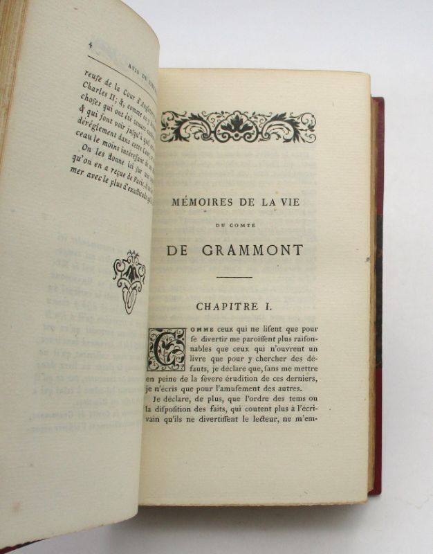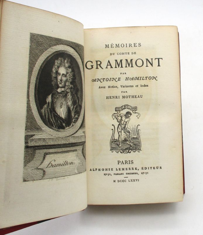 Édition faite sur celle de 1713 à Cologne. Elle est illustrée d’un portrait de l’auteur gravé par Lemaire en frontispice et comprend une notice biographique sur Hamilton ainsi qu’un répertoire des variantes et des notes d’Henri Motheau.