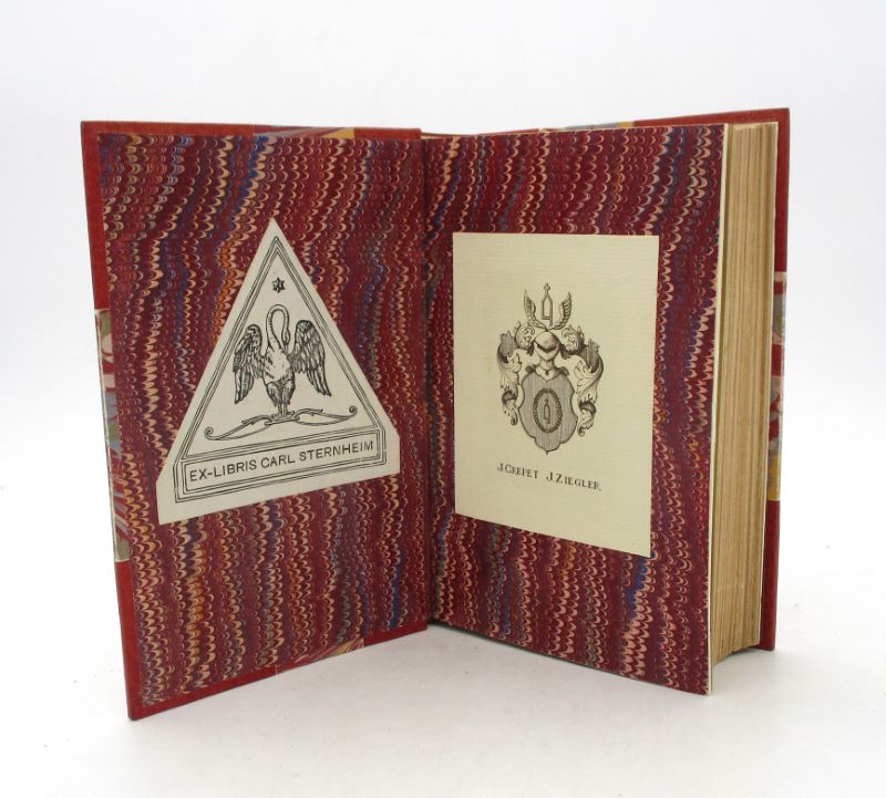 Édition originale ornée d’un frontispice de Rochegrosse. Cet exemplaire comporte une table des noms cités manuscrites de Jacques Crépet. Ex-libris héraldique de J[acques] Crépet (fils de l’homme de lettres Eugène Crépet) et de J[ean] Ziegler (fils de Jacques), ex-libris gravé Carl Sternheim, un célèbre auteur et dramaturge allemand.