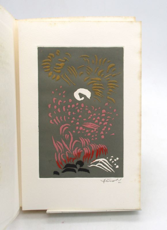 Édition originale illustrée de 3 eaux-fortes en couleurs signées par Hérold et de la reproduction d’une calligraphie en couverture. Un des quelques exemplaires hors commerce, tirage non décrit.