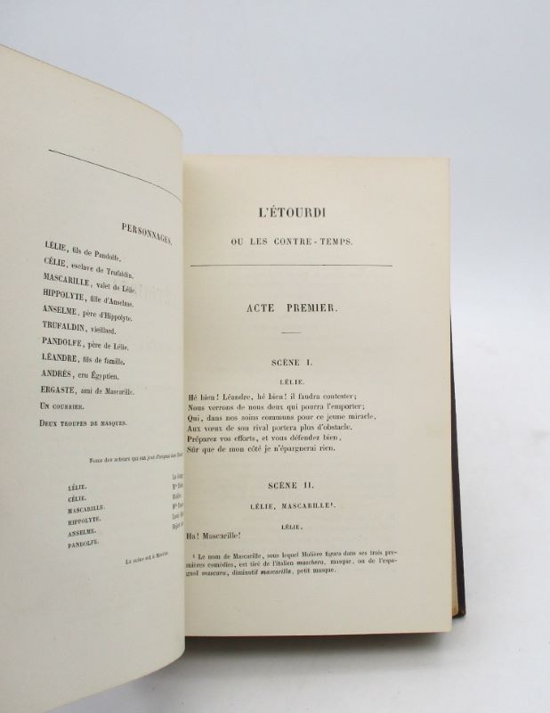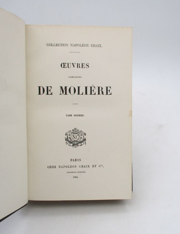 Édition issue de la Bibliothèque universelle des familles éditée par Napoléon Chaix. Elle comprend une longue notice sur Molière au premier volume. Livre relié au fleuron doré du Lycée impérial Louis le Grand.