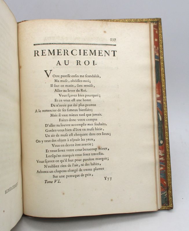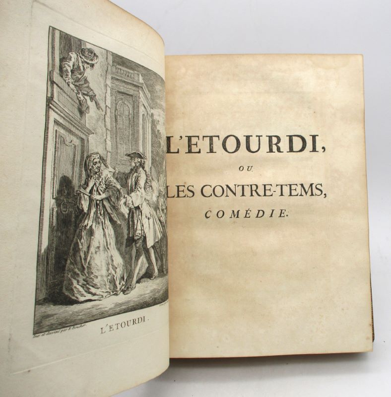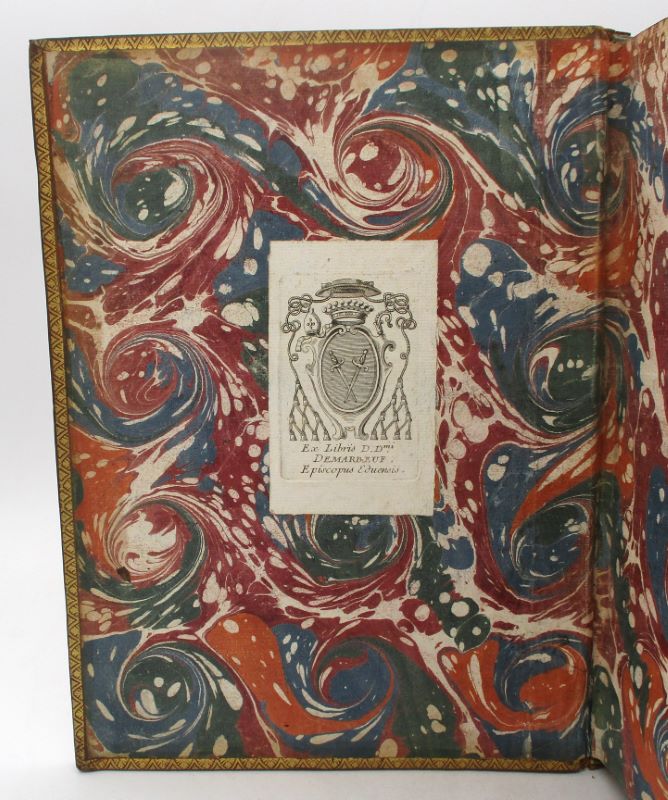 Très belle édition illustrée d’un portrait de l’auteur gravé par Lépicié d’après Ch. Coypel en frontispice, de 33 planches hors-texte de François Boucher gravées par Laurent Cars, de 198 vignettes et culs-de-lampe (certains répétés) gravés par Joullain et Cars d’après Boucher, Blondel et Oppenord ainsi que de jolies lettrines. Ex-libris héraldique de l’évêque d’Autin Yves Alexandre Demarbeuf. Cohen, 712 : « Le chef-d’oeuvre de Boucher, comme illustration; c’est l’un des plus beaux livres de la première partie du XVIIIe siècle. »