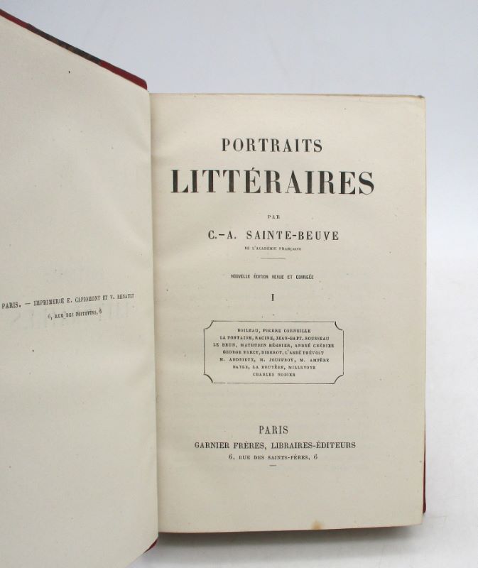 Paris, Garnier frères, s.d. et 1886. 4 vol. in-12, 502 pp. + 542 pp. + 550 pp. + 542 pp., demi-maroquin à coins rouge, filets dorés sur les plats, dos à nerfs orné de caissons dorés, tête dorée.