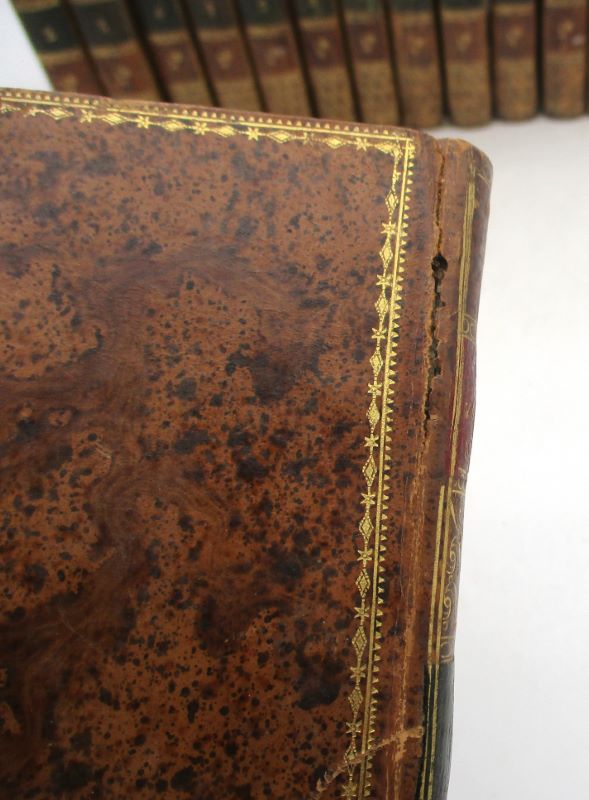 Paris, Veuve Le Petit, an XII – 1804. 15 vol. in-12, 24 pl. + 27 pl. + 24 pl. dont 1 bis, veau moucheté havane, frise en encadrement sur les plats, dos long orné de frises et fleurons dorés, pièce de titre rouge, pièce de tomaison verte, tranches dorées .