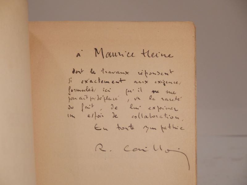 Edition originale. ENVOI autographe signé de Caillois à Maurice Heine, « dont les travaux répondent si exactement aux exigences formulées ici qu’il ne me paraît pas déplacé, vu la rareté du fait, de lui exprimer un espoir de collaboration. En toute sympathie ».