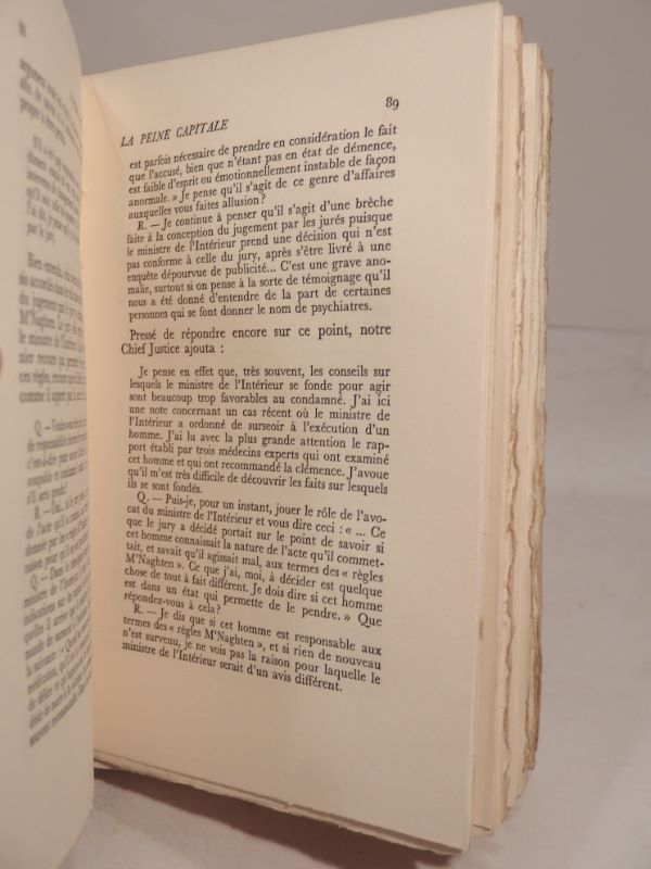 Edition originale du texte de Camus (Réflexions sur la guillotine), UN DES 260 exemplaires numérotés sur vélin teinté filigrané Marais, seul grand papier.